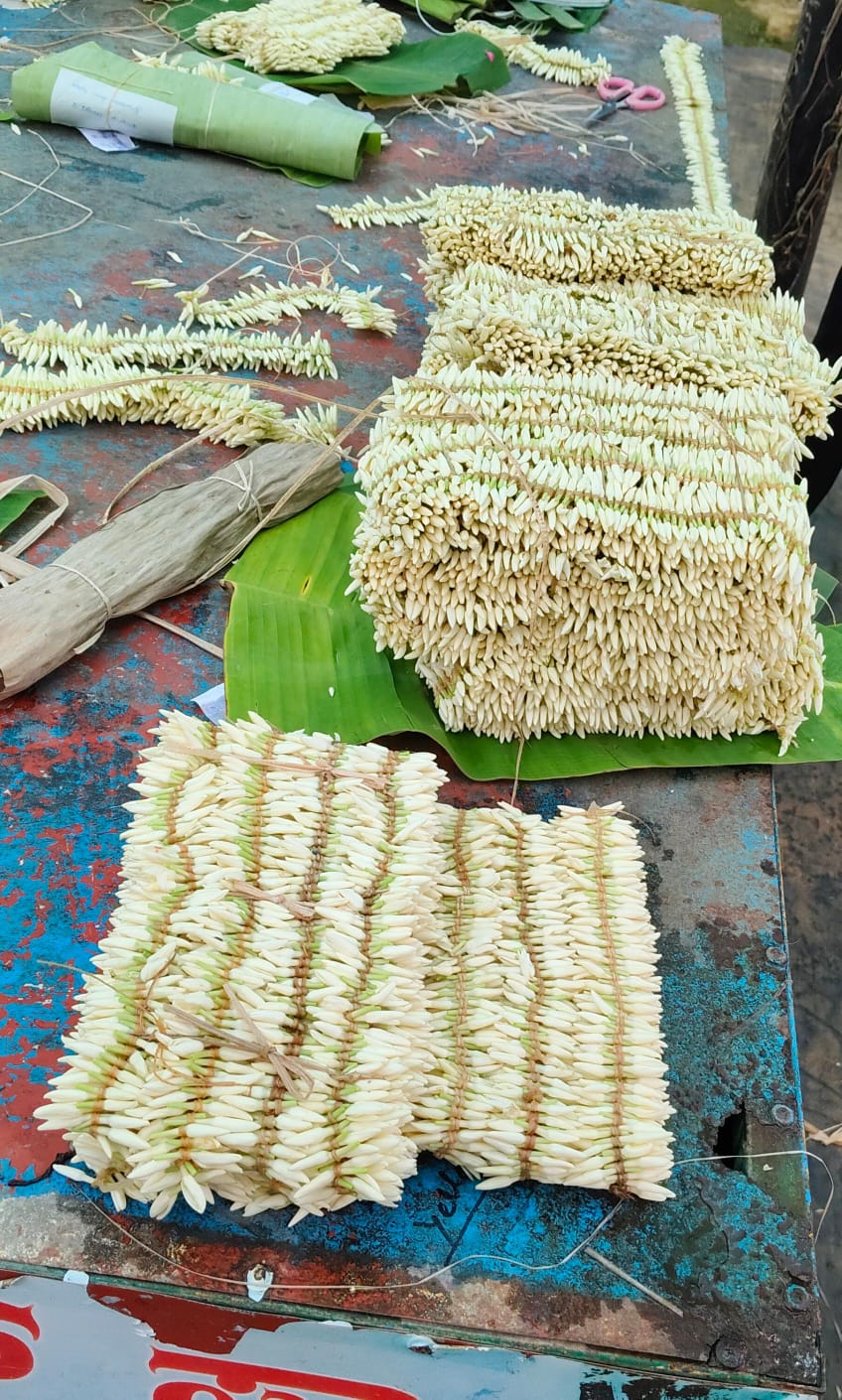 ಒಂದು ಸುತ್ತು ಮಲ್ಲಿಗೆಗೆ ಕಡಿಮೆಯೆಂದರೂ 125 ಮಿಟ್ಟೆ (ಮೊಗ್ಗು). ಒಂದು ಚೆಂಡು ಅಂದರೆ 6 ಸುತ್ತು .ಒಂದು ಅಟ್ಟೆಗೆ-4 ಚೆಂಡುಗಳು. ಒಂದು ಅಟ್ಟೆಗೆ ಮಾರುಕಟ್ಟೆಯಲ್ಲಿ 2100ರವರೆಗೆ ಬೆಲೆಯಿದೆ. ಮಾರುಕಟ್ಟೆಯ ಸ್ಥಿತಿಗತಿಗೆ ಅನುಗುಣವಾಗಿ ನಿತ್ಯ ದರ ಏರುಪೇರಾಗುತ್ತಿರುತ್ತದೆ. ಮಾರ್ಚ್ ಎಪ್ರಿಲ್ ತಿಂಗಳಲ್ಲಿ ಹೂವಿನ ಫಸಲು ಹೆಚ್ಚು .ಆದರೆ ದರ ಕಡಿಮೆ. ಚಳಿಗಾಲದಲ್ಲಿ ಹೂವಿನ ಇಳುವರಿ ಕಡಿಮೆ. ದರ ಹೆಚ್ಚಿರುತ್ತದೆ.