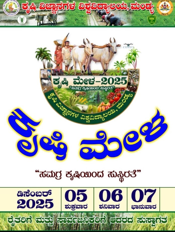 ಮಂಡ್ಯದಲ್ಲಿ ಡಿಸೆಂಬರ್ 5 ರಿಂದ 7 ಕೃಷಿಮೇಳ